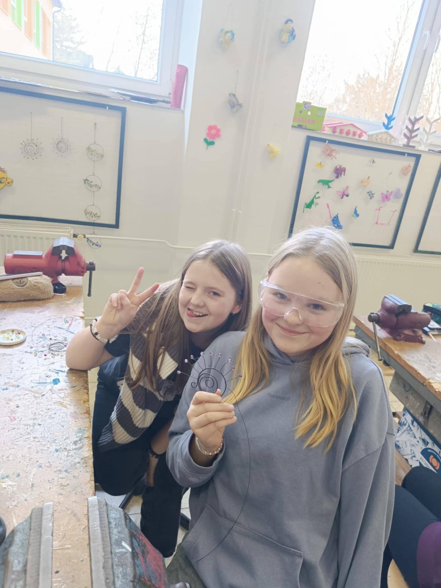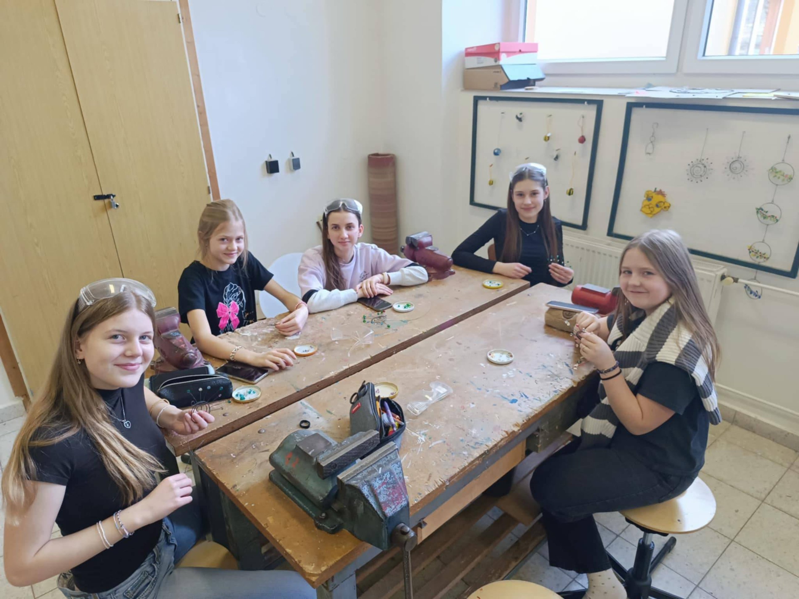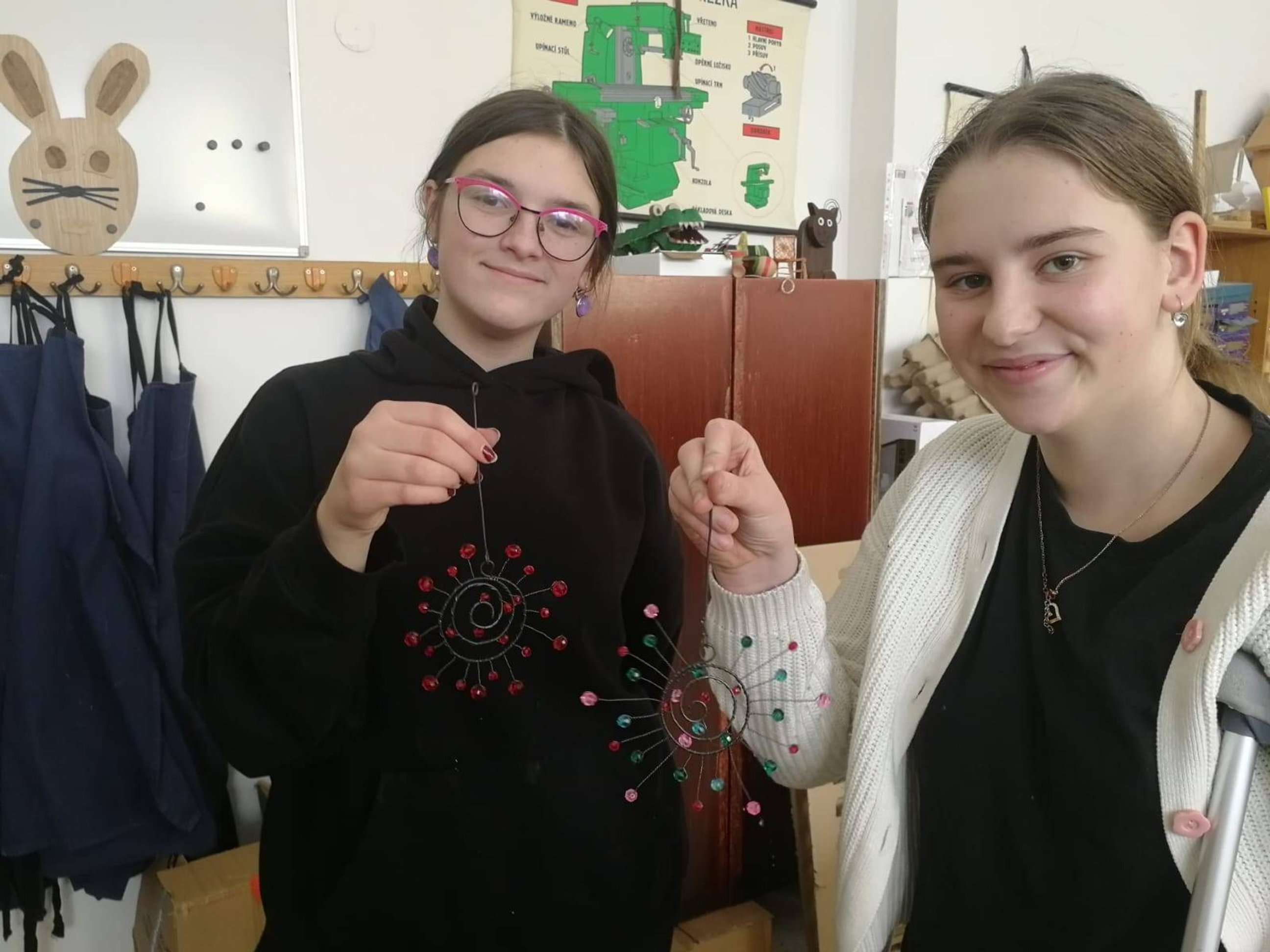 Pod vedením lektorky Lady Poukové si dnes 19. ledna a v pátek 16. ledna zkusila děvčata ze 7. tříd a 8. a 9. třídy pracovat s vázacím drátem. Techniku drátkování zvládla skvěle a sluníčka se jim vydařila.